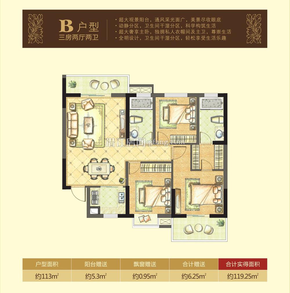 超大观景阳台,通风采光面广,美景尽收眼底; 动静分区,卫生间干湿分区,科学构筑生活; 超大奢享主卧,独拥私人衣帽间及主卫,尊崇生活; 全明设计,卫生间干湿分区,轻松享受生活乐趣。
