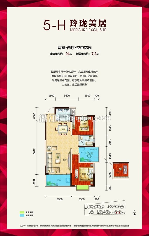 餐厨及客厅一体化设计,充分提高生活效率 客厅连接1.8米景观阳台,更多阳光与清风 半赠送空中花园,可改造为书房或客卧 二变三,生活无限精彩