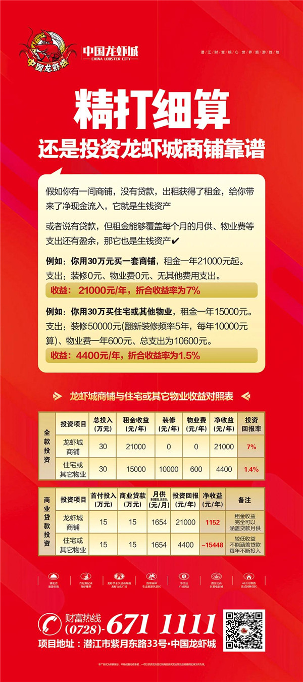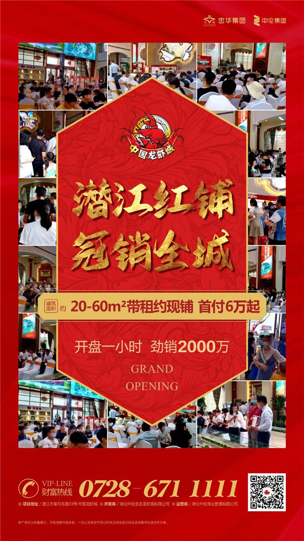 此次中伦金街72套房源开盘1小时便热售2000万,也从侧面印证了中国龙虾城当之无愧潜江商业红盘,投资中国龙虾城是精明的选择。