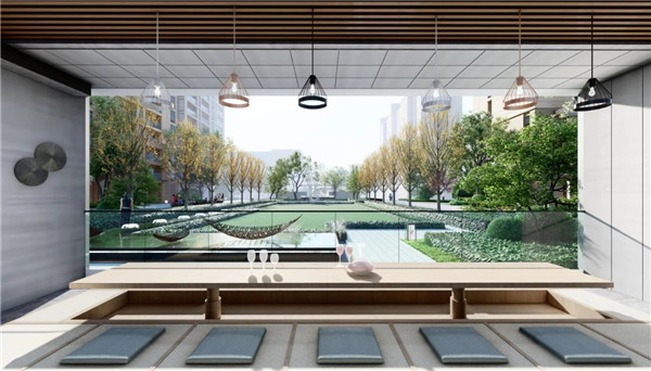 宜静亦动,宜行亦美小区绿化以潜江市水杉之美为灵感,展示线性现代的水杉静态美。结合以景墙的形式表现国韵山水动态之美。宜静亦动!简单几何线条的勾勒表现极具的现代设计感,利用微地形的绿地起伏来增强场地的趣味性与艺术感。入口处精致的叠水景观,区域内植物组团贯穿着游园小道,零星有序的结构建筑小品点缀着中心阳光草坪……宜行亦美。