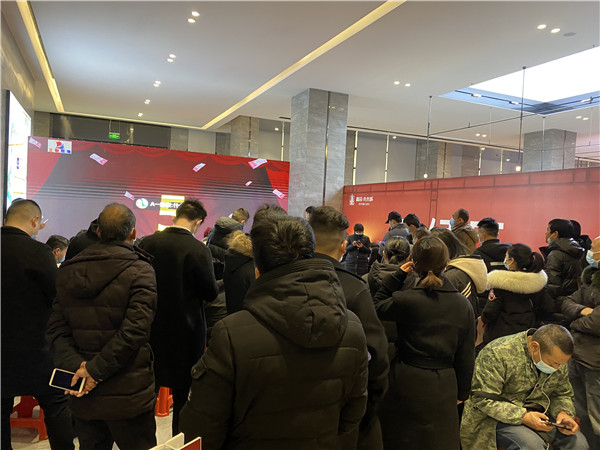 选房等候区内,大家热切地、满面笑容地聚在一起,或互相谈论着各自看中的房源,或仔细认真的研究心仪的户型。开盘启动的时间愈近,人潮开始涌动起来,虽是冬天,但也抵不过大家满腔的热情。每个人像是都憋着一股劲,势必要买到心仪的房子。