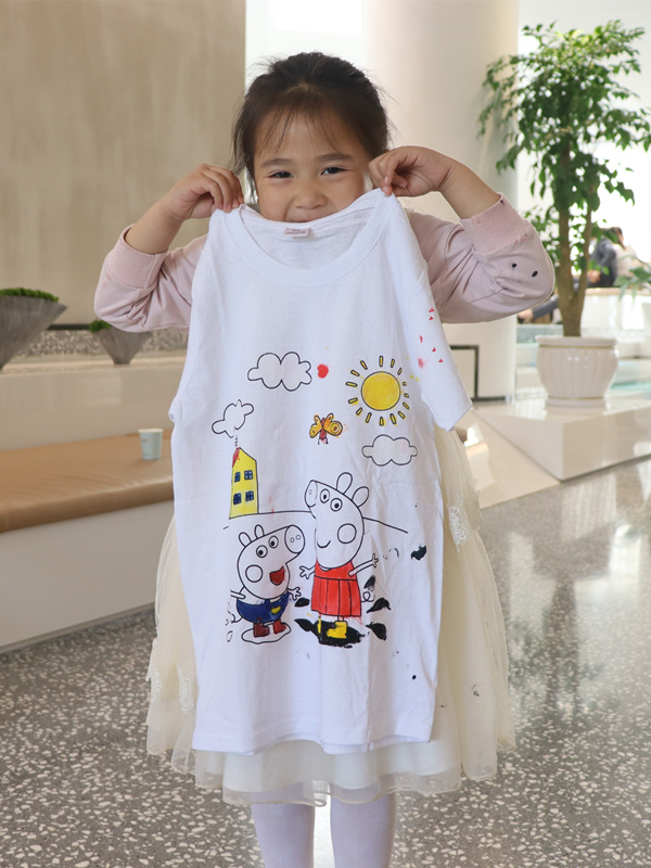 看着孩子们亲手制作的彩绘T恤,家长们脸上也绽放出舒心的笑容,夸奖着,鼓励着,让孩子们尽情发挥。大家纷纷表示,这个活动不仅培养了孩子的动手能力,更亲近了与孩子之间的感情,而且让孩子认识了这么多的小朋友,一举多得,玩得非常开心。