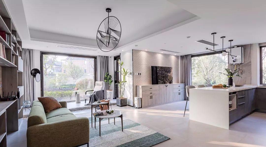 客厅,一个家庭的多功能的空间,可满足休息、工作、聚会等需求,满足和家人、朋友相聚的需要。客厅与餐厅采用一体化设计,南北直通观景阳台,形成了一个纵向巨幅场域,面积趋于零浪费,增加生活的品质感。