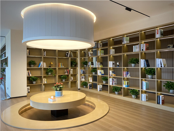 进入营销中心内,内部整体风格为现代轻奢风,利用了灰白金三色交织,简洁中自带艺术奢华、极具建筑美感。