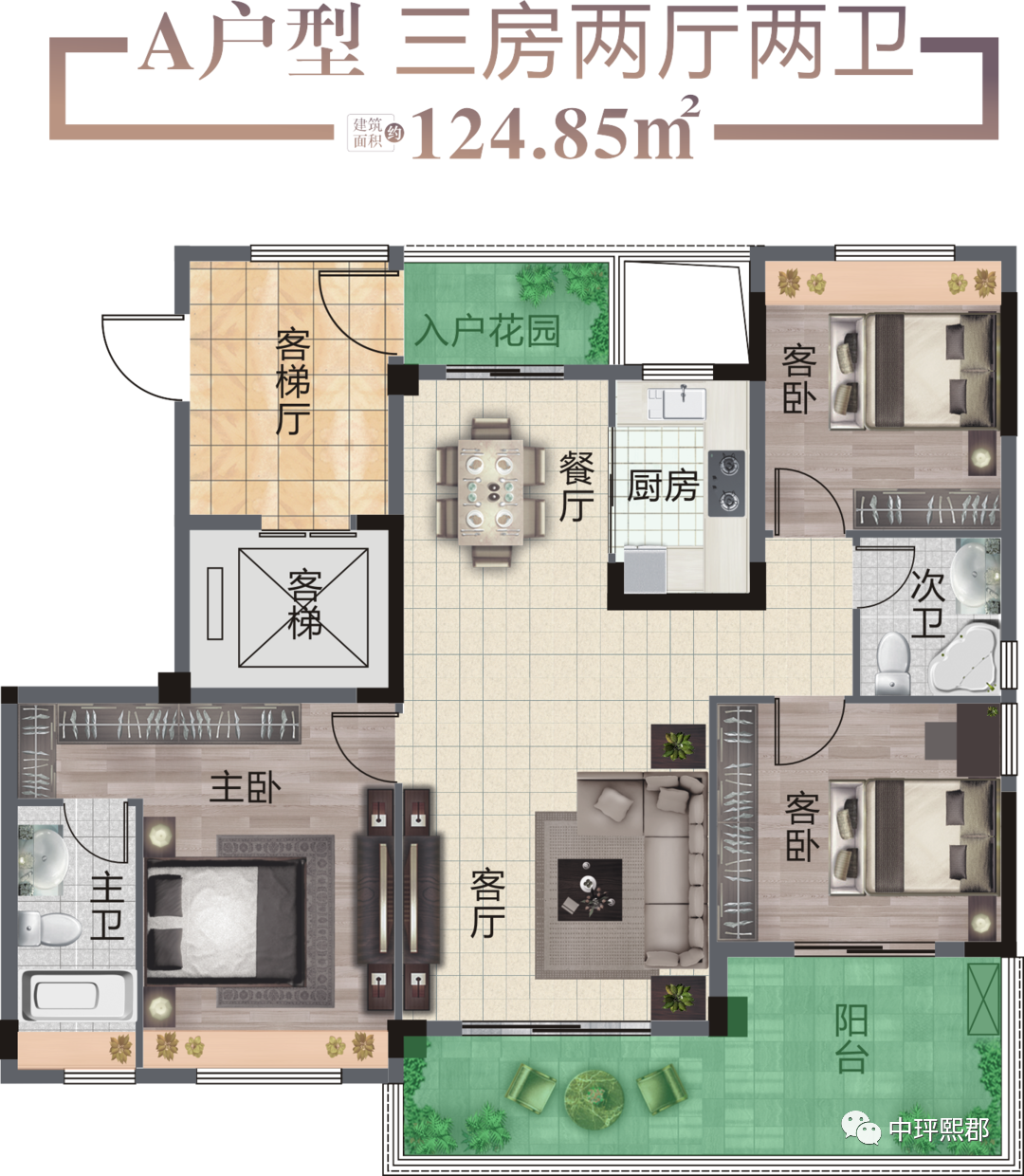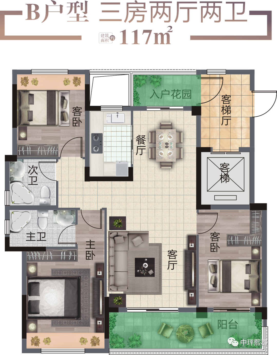 中玶·熙郡1#楼和5#楼取得预售证,其中1#楼预售面积6003.42㎡,预售套数52套。5#楼预售面积4173.82㎡,预售套数35套,共计87套。1#楼和5#楼都为18层高层住宅,户型面积约117-124.85㎡,毛坯交付。