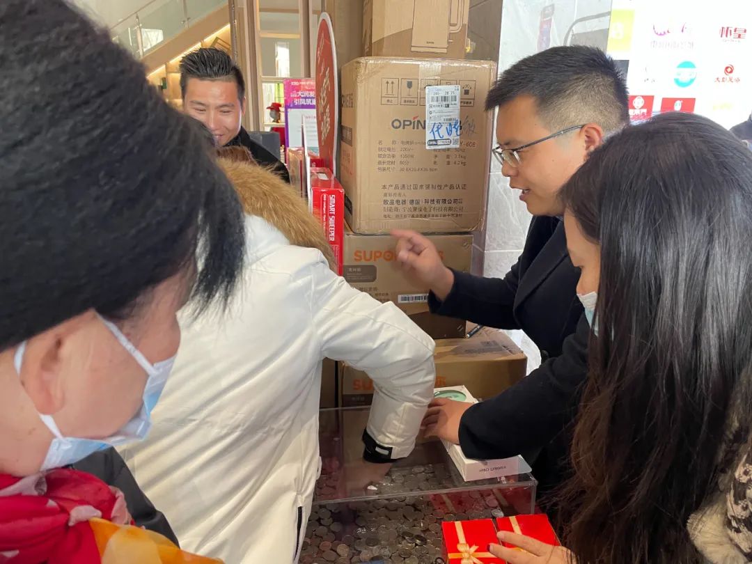 整点抽奖时,接连不断的中奖号被主持人一个个报出,来访客户脸上都洋溢着喜气的笑容。