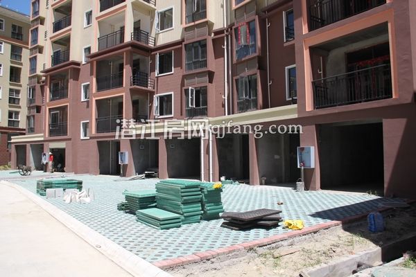 目前整个小区已经基本成形,所有楼体内外施工已大致完成,正在完善楼栋一层的地上车库和道路。地下车库也已经完工。临殷台路商铺的卷闸门已经安装完成,工人们正在安装二层的窗户,商铺前面的路也已经铺完。据了解,剩余两栋楼将于今年8月底交房。二、三期的绿化已经开始,预计在明年完工。