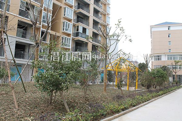 图为小区在建绿化,目前树木与草皮已经种上,等到夏天,相信定能够为业主带来成片绿荫