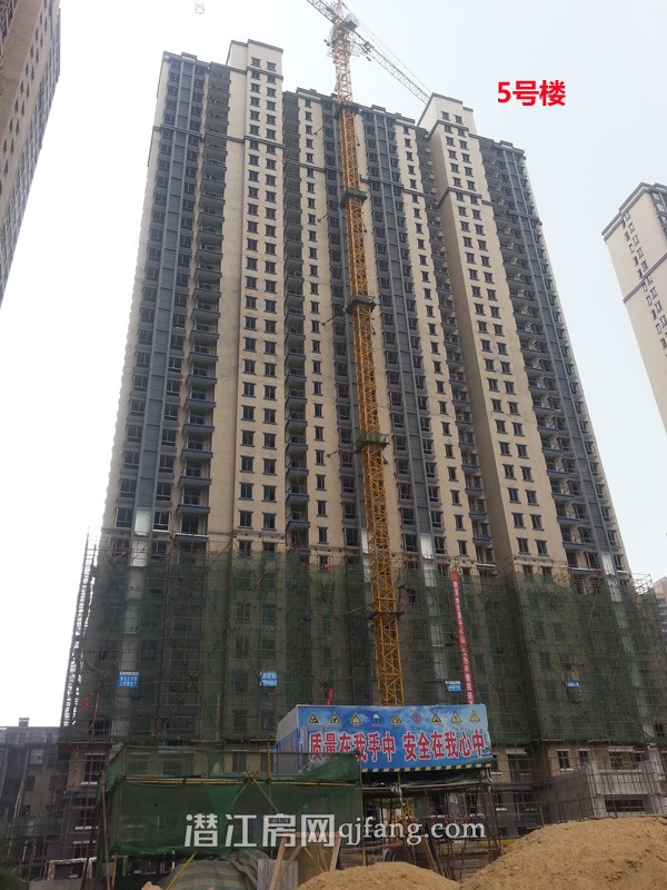 目前五号楼外防护网基本拆除完成,外立面已经呈现。