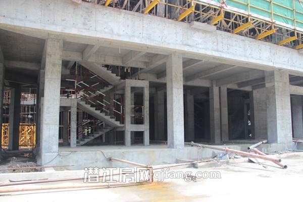 据现场置业顾问介绍:潜江城1#楼现在已经建至地上9层,2#楼建至地上三层,停车场入口路面水泥已铺设完成,侧面护墙即将开始浇灌水泥!天街前水泥路面正在铺设中!屈臣氏、肯德基、公馆KTV等知名商家即将入驻!