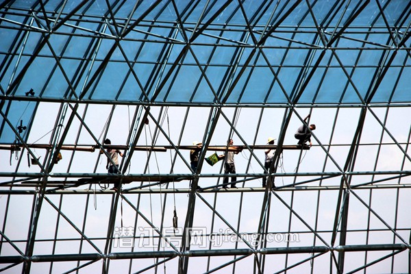 在密西西比水系的尽头,是温室热带雨林风景区了,大家可以看工人们正在忙碌的安装玻璃罩,相信很快能来这里领略热带雨林的风景了。