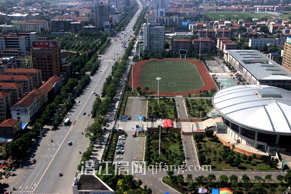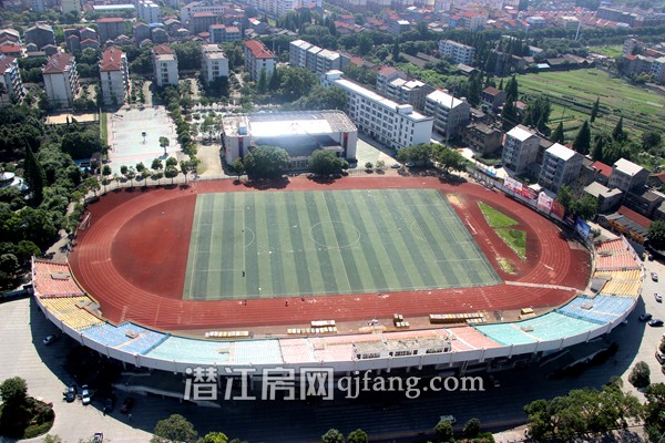 项目对面刚刚举办完龙虾节开幕式的潜江中学体育场