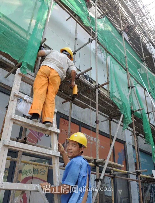 ” 进入一楼大厅里面,工人们正戴着口罩站在三角架梯上往墙面上刮白色的腻子。 “累吗?”记者问。来自河南的寇师傅表示,累倒是不累,是太热了。