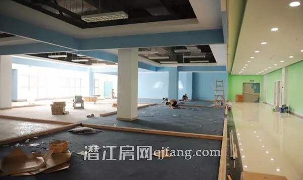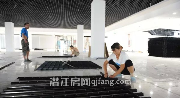 二楼大厅比较整洁,有几个工人在电风扇下组装吊顶材料。“我们都是本地人,承包了大厅吊顶,来了好几天了,这里的工作量基本上都完成得差不多了。”来自总口的李师傅半跪在地上将黑色的合金型材组装成一个个井字形部件。