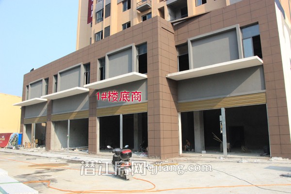 金色公馆高端大气的大门已初见雏形,1、2号楼下的商铺已安装好卷闸门。