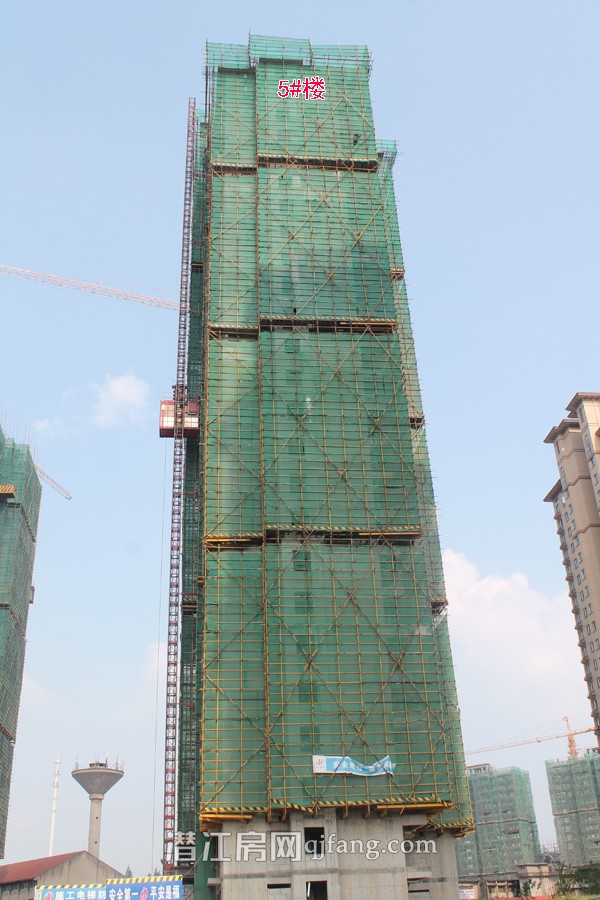 而还在修建的2、4、5号楼。2号楼虽才建至16层,但基本售完,剩下顶层和底层的房源;4号楼已粉刷完毕,购买了中南·世纪锦城4号楼的亲们,坐等年底收房吧;5号楼则已封顶售罄。