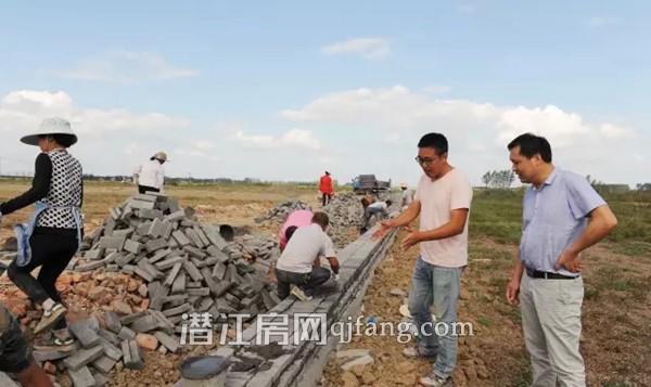 湖北荣协电力器材有限公司总经理周之超(右二)与总口农场招商局负责人察看施工现场