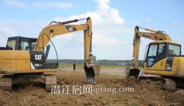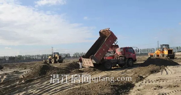 潜江市邱氏节能建材高新技术股份有限公司厂区内,见三台货车正装卸土方,三台挖掘机在平整土地。据施工负责人黄先生介绍说,现场一共有23台车在施工作业,还有17辆货车在运输沙土途中,预计明天完工。原计划26天的施工任务我们将提前11天完成。