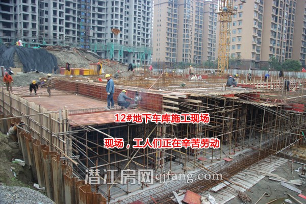 从拍摄照片来看,12#楼的地下车库修建工作基本快了完成,工人们正在往上修建。