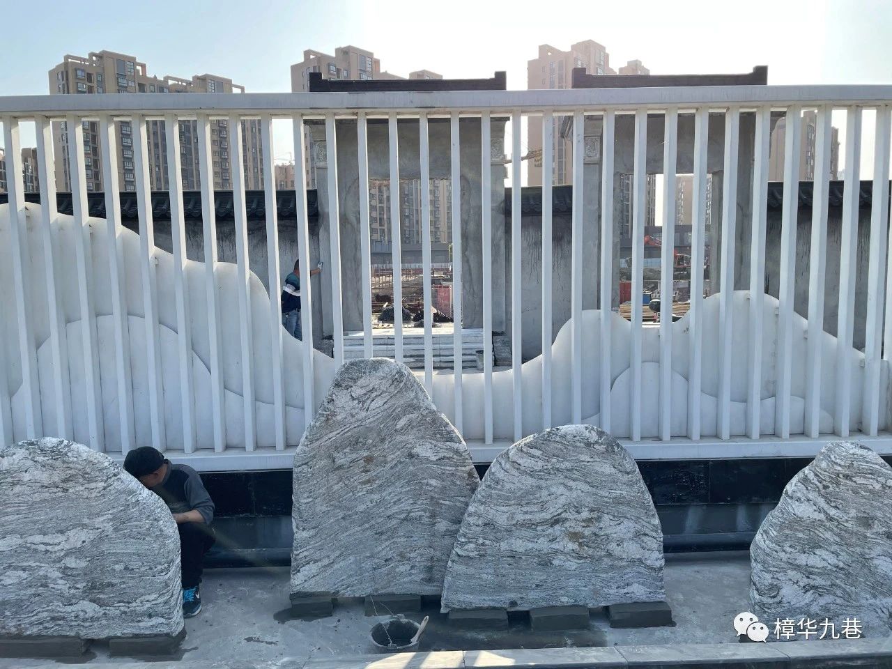 造型优美的石质装饰小品,都是由天然石材打磨而成,专门的造景师进行安装摆放,待完工后,将会进一步为您的生活环境增添一份天然优雅的中式园林之美。