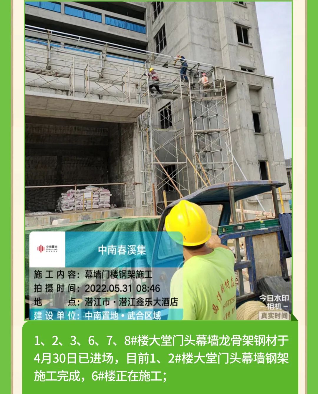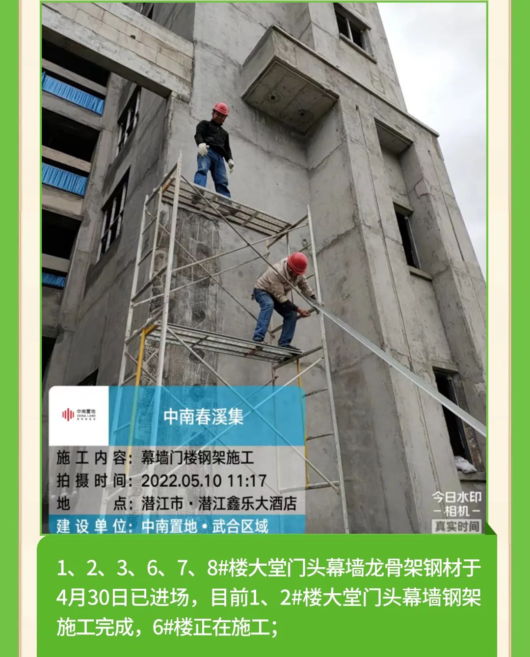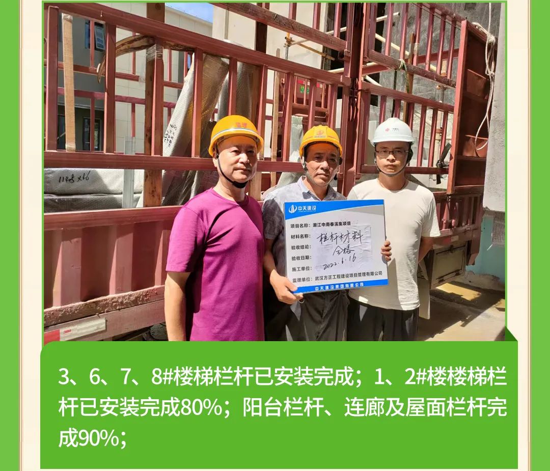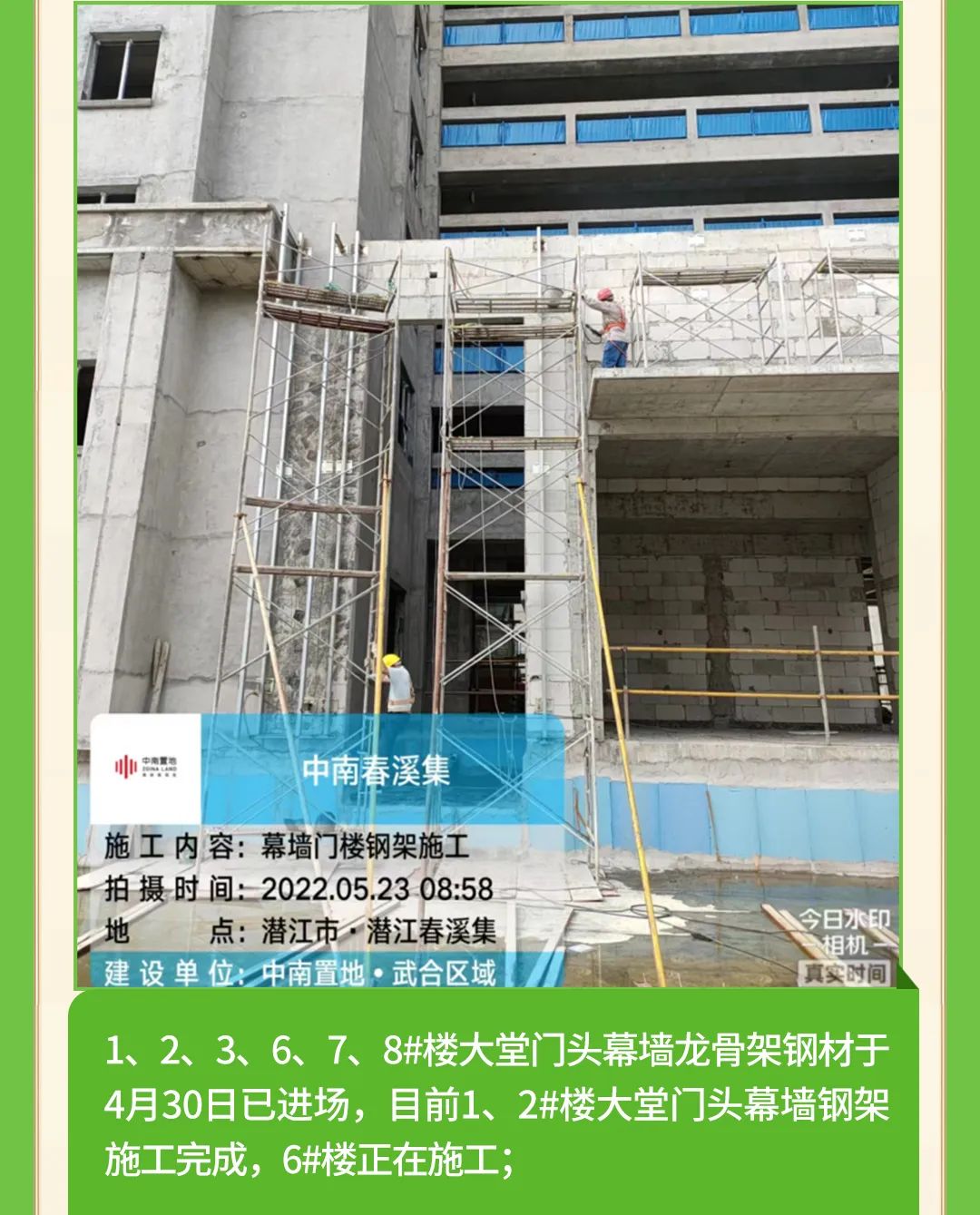 屋面架构层涂料完成,外墙保温工程完成;外窗框安装完成;1#、2#楼屋面防水施工完成