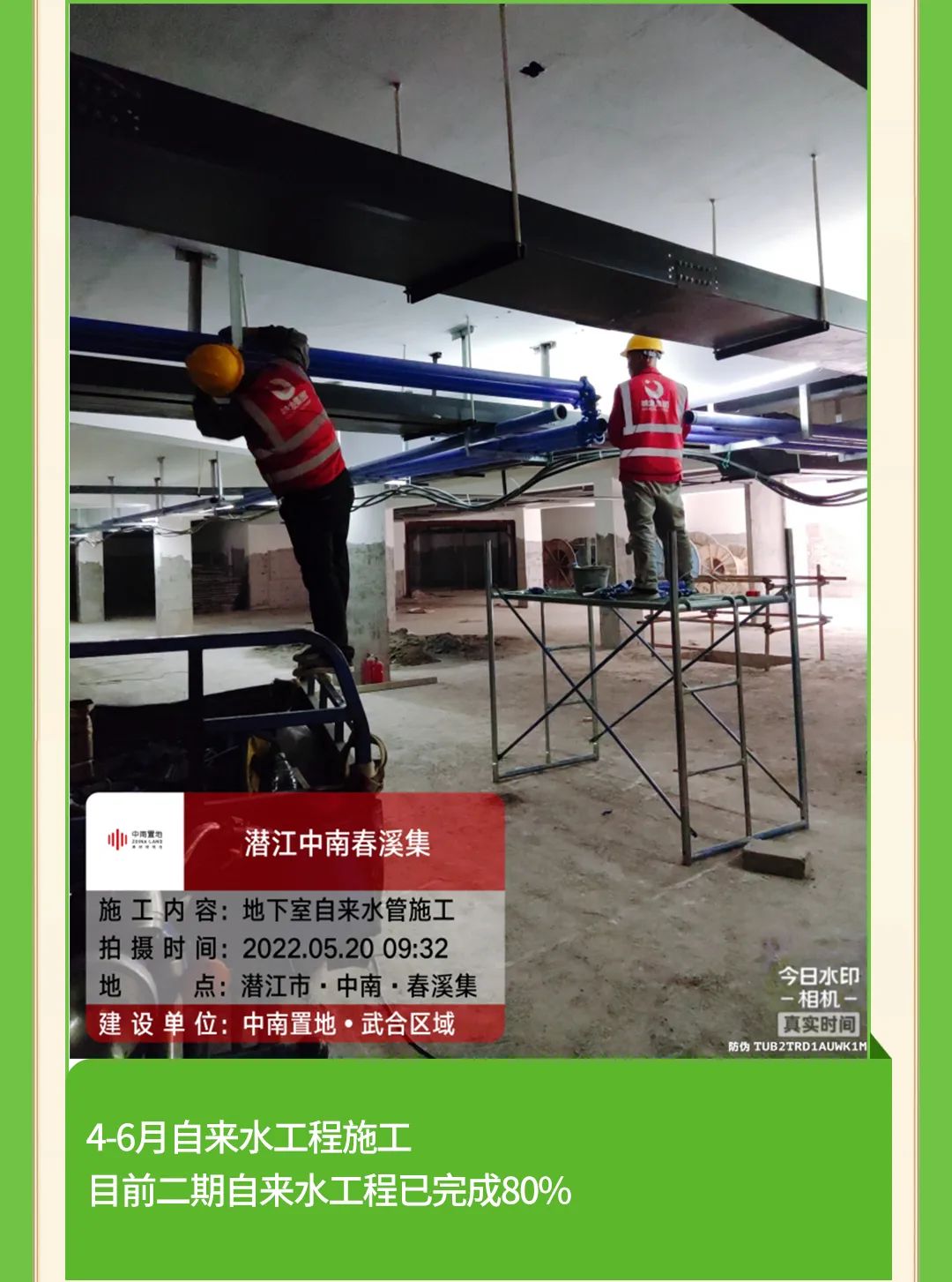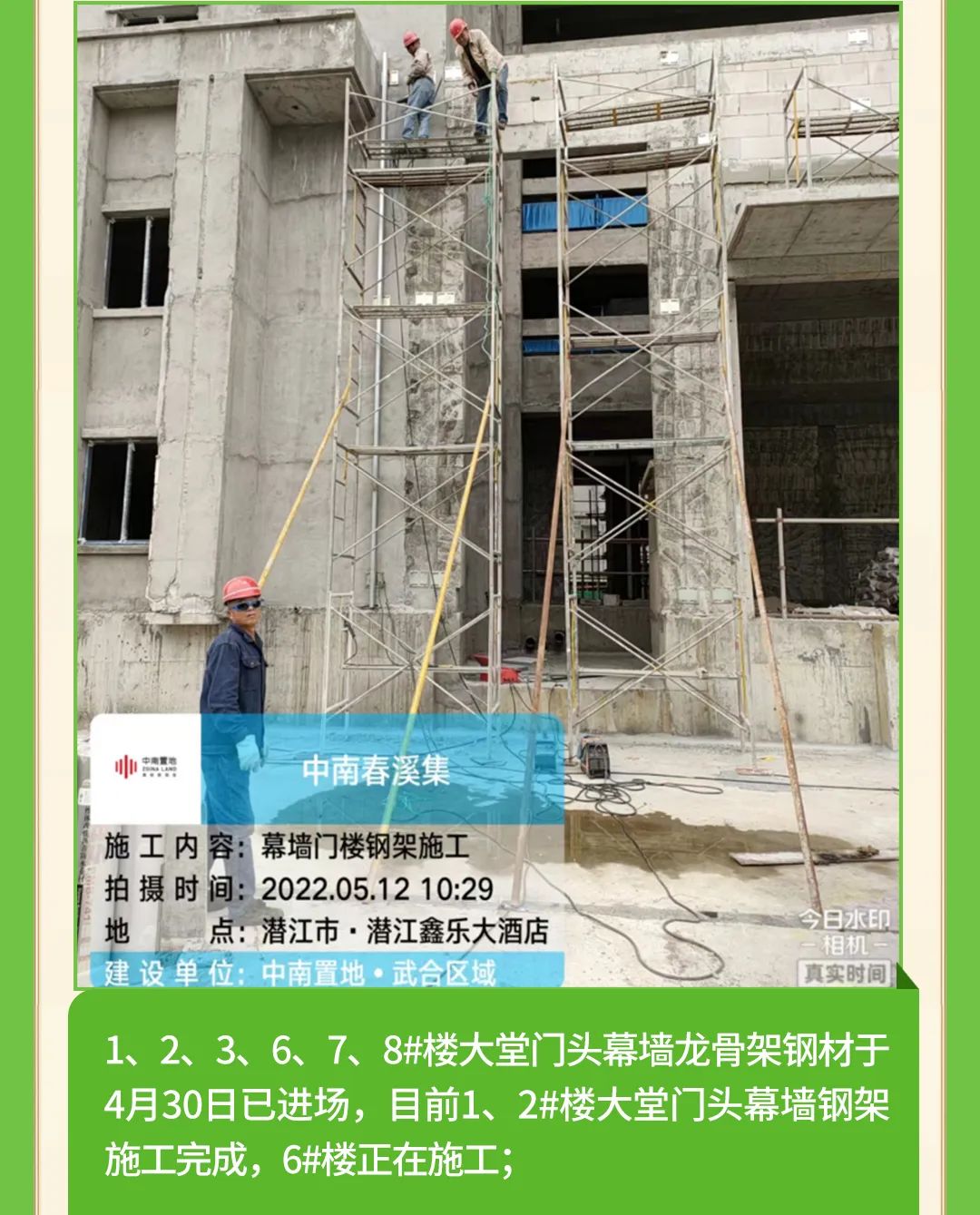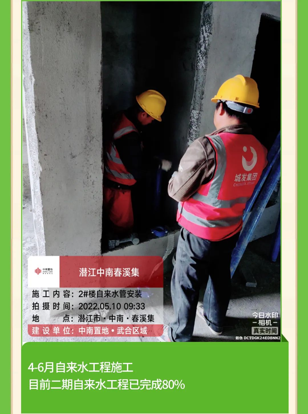 屋面架构层涂料完成,外墙保温工程完成;外窗框安装完成;1#、2#楼屋面防水施工完成