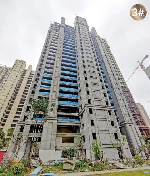 3#楼主体结构封顶,砌体施工完成,外墙抹灰完成,内墙抹灰完成,外架拆除完成,外墙涂料完成20%(外架、塔吊已安装,外挂梯已安装)