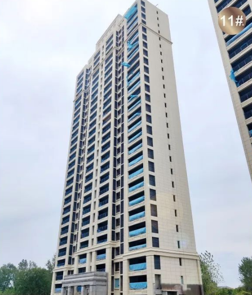 11#楼主体结构封顶,砌体施工完成,外墙抹灰完成,内墙抹灰完成,外架拆除完成,阳台栏杆安装完成,窗框安装完成,外墙涂料完成,保温地坪施工完成(外架、外挂梯已安装,塔吊已安装)