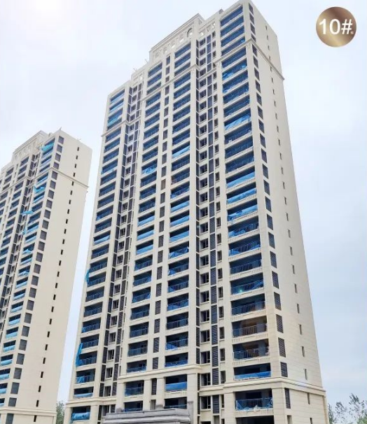 10#楼主体结构封顶,砌体施工完成,内墙抹灰完成,外墙抹灰完成,外架拆除完成,阳台栏杆安装完成,窗框安装完成,外墙涂料完成,保温地坪施工完成(外架、外挂梯已安装,塔吊已安装)