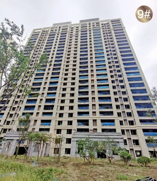 9#楼主体结构封顶,砌体施工完成,内墙抹灰完成,外墙抹灰完成,外架拆除完成,阳台栏杆安装完成,窗框安装完成,外墙涂料施工完成95%;保温地坪施工完成(外架、塔吊已安装,外挂梯已安装)