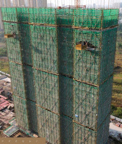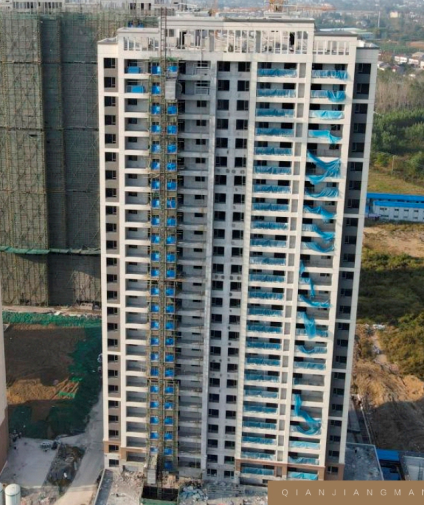 ▲2#楼电梯安装、外墙真石漆施工、窗、栏杆安装完成,楼内卫生清理▲