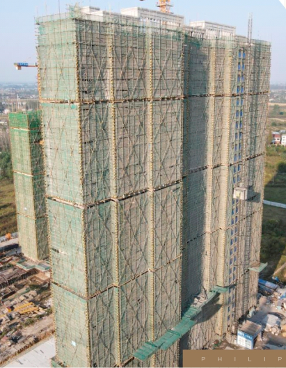 ▲3#楼结构封顶、窗框安装完成,室内外抹灰施工▲