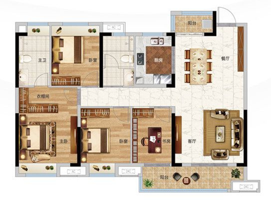 中南·春溪集142㎡四房户型 二娃时代演奏幸福四重奏