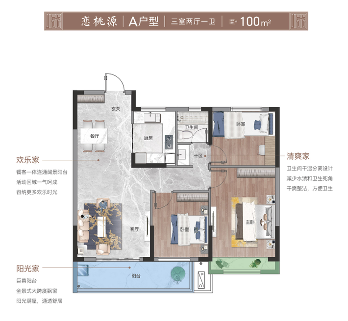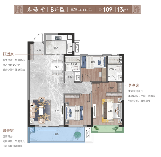 主卧套房设计,超大飘窗、独卫、衣帽间