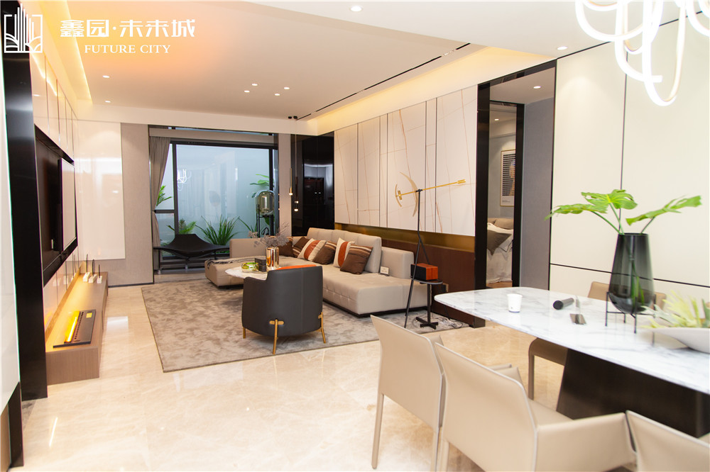 鑫园未来城建面约124㎡花园洋房,约4米大面宽客厅,赋予生活理想格局,打造人性化宽敞的布局空间。开阔格局,餐客一体化设计,入门即可感受生活空间的阔绰。休憩娱乐,会晤亲朋好友,纵享大空间的惬意舒居生活。