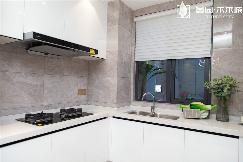 餐厨相连,人性布局。厨房为U型设计正对餐厅,缩短传菜距离,餐厅相对独立,打造更安静、明亮的用餐环境,也避免了油烟的问题,有利于居者身体健康。