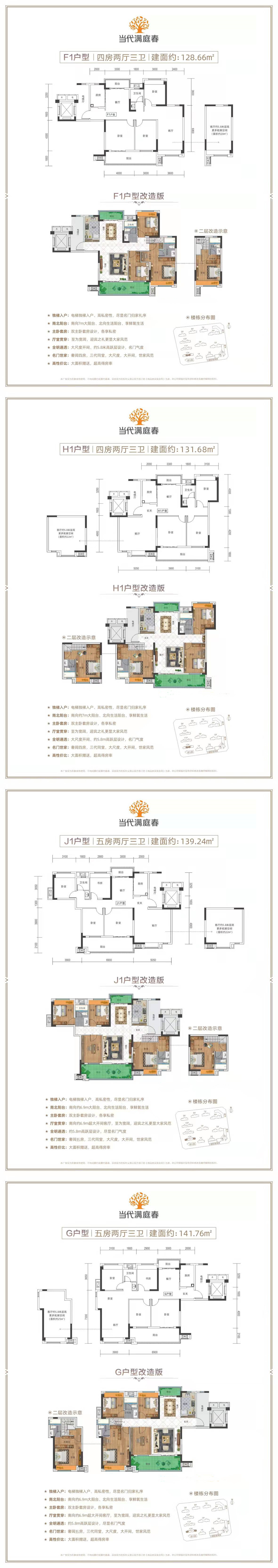 刚刚,位于潜江高铁新区的纯新盘——当代满庭春ΜΟΜΛ项目公布了户型图,项目是当代集团落子潜江的第三盘,位于东城大道与兴盛路交汇处,项目已取得土地权属面积为50332.56m²,容积率2.5,绿地率35%。目前已公布的户型面积段为128.66-141.76㎡。本次一期规划用地面积39259.24m²,总建筑面积127819.89m²。该地块包含9栋住宅和一所6班幼儿园,总户数808户,停车位817个。