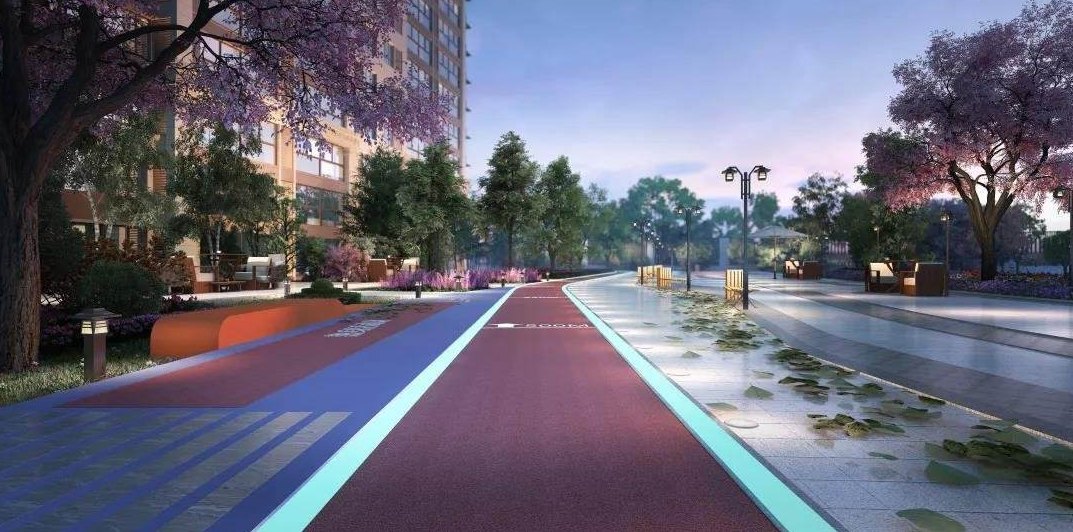 社区内打造一环、三庭、六轴、八景“全龄段”主题乐园,以“运动健康”为基础配备约900米夜光跑道,打造全龄生态运动型生态社区,形成“运动+亲子”、“运动+景观”、“运动+休憩"等多重全龄层康体配套,让家人拥有健康生活。