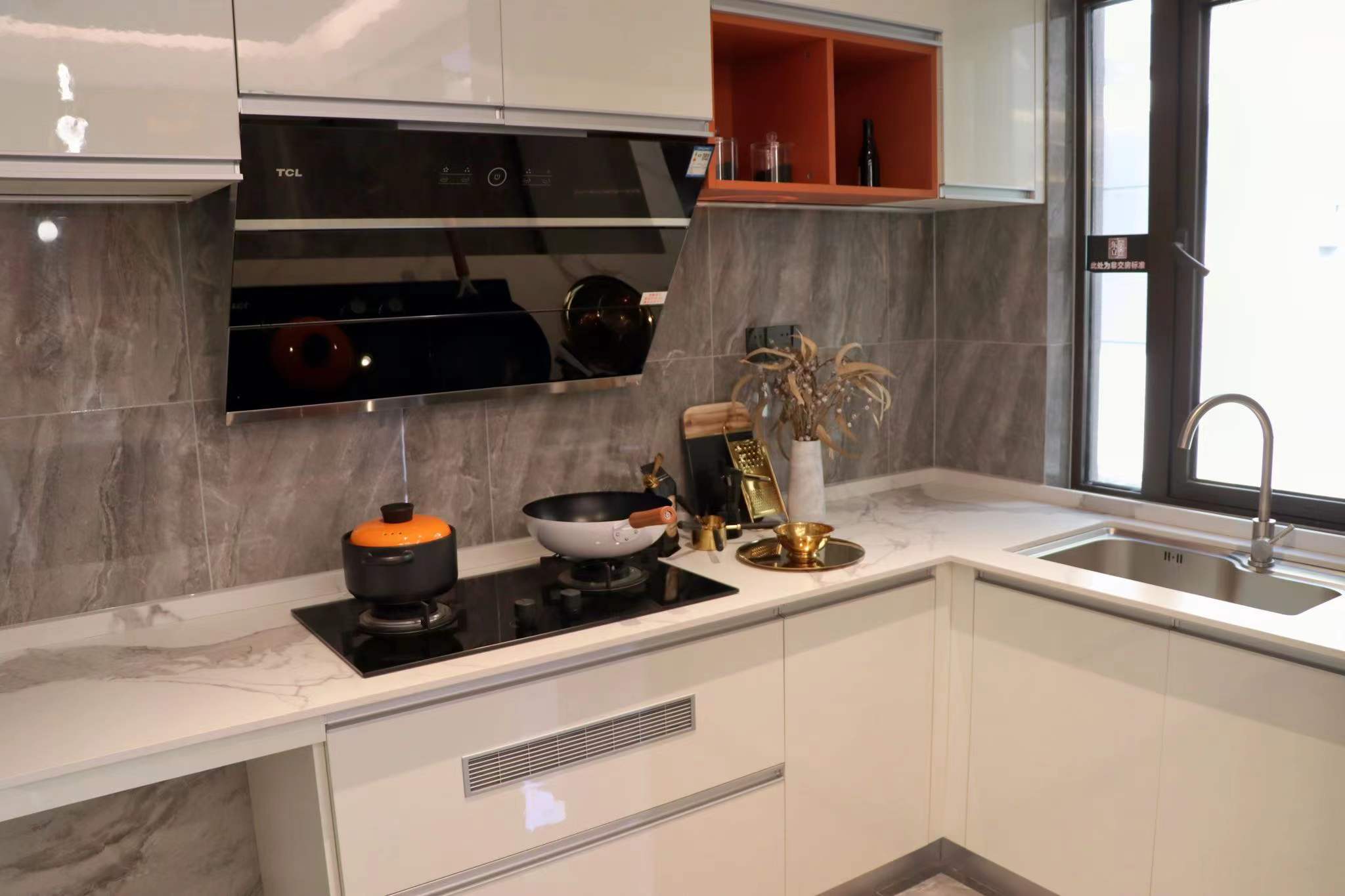 厨房采用L型设计,使空间得到充分利用,明亮空间可尽情施展厨艺。并且厨房连通生活阳台,空间更为宽敞舒适。