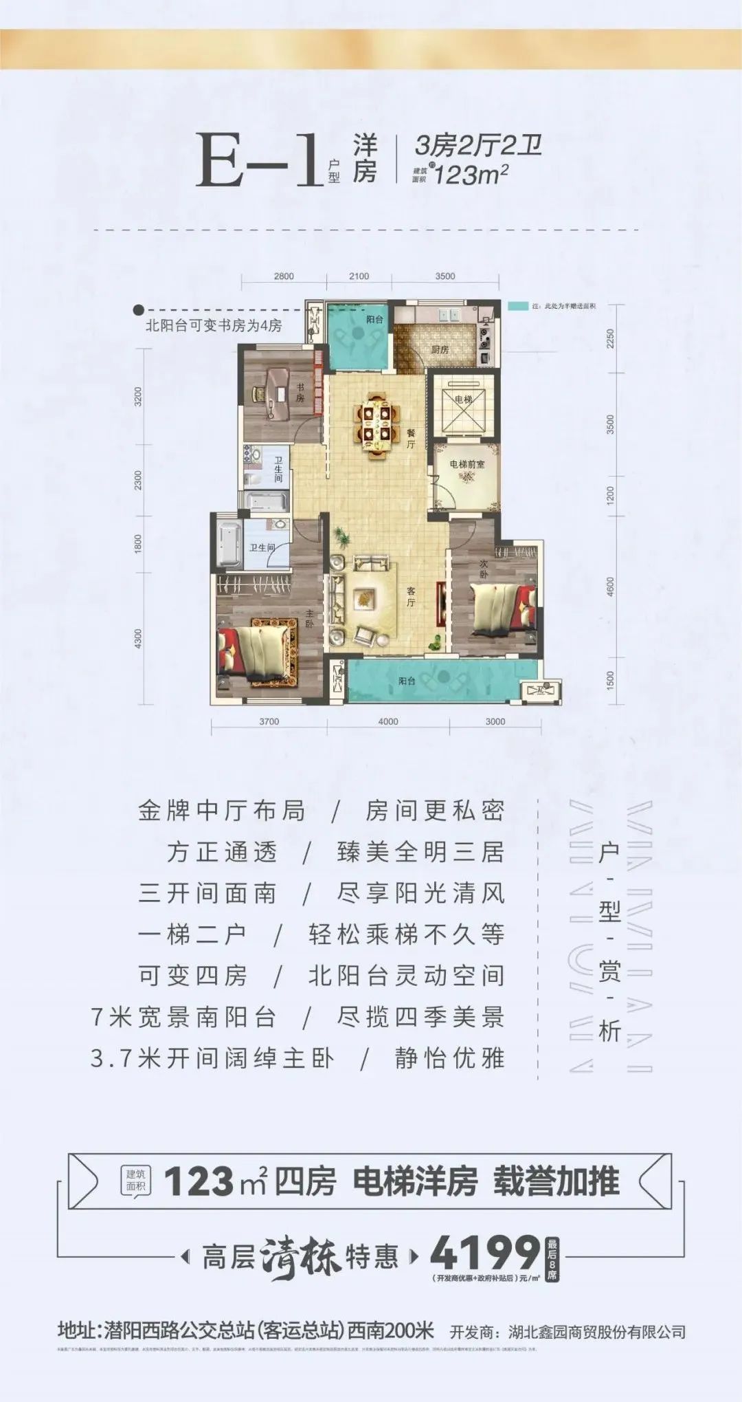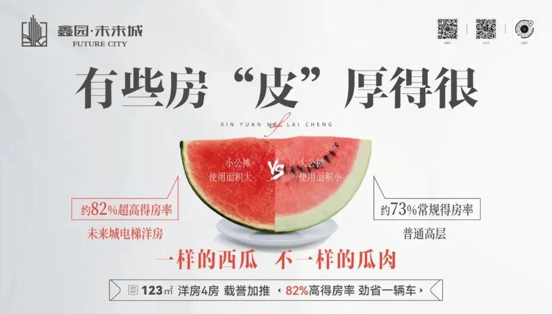 鑫园未来城电梯洋房82%高得房率,傲领潜城,相同建筑面积123㎡的户型,高层只能3房2卫,而洋房套内面积更大,可以实现4房功能,居住舒适度更好;相同单价的户型,洋房套内面积单价低于高层500元/㎡。