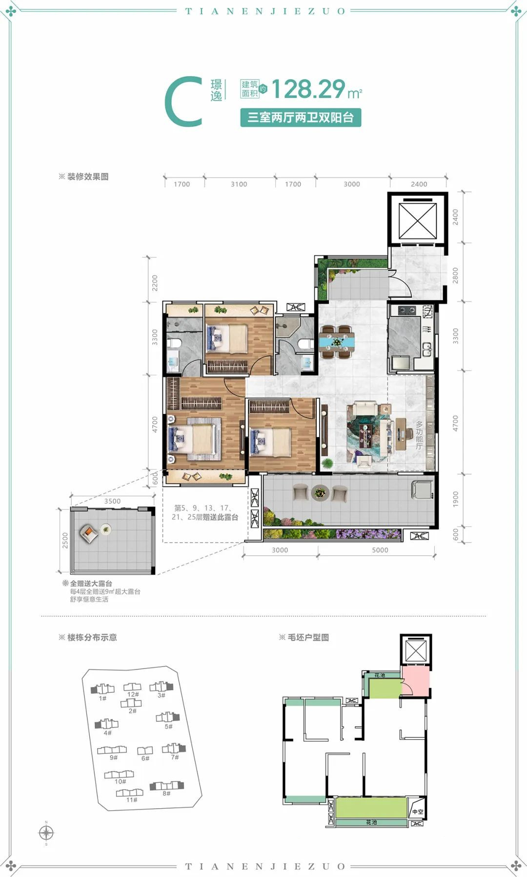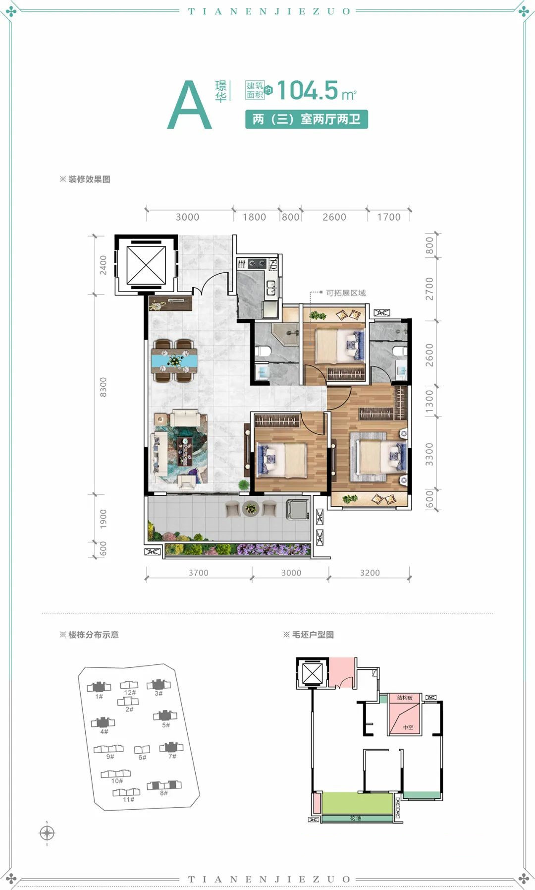 全盘879套房源,淬炼建面约104.5-165.78㎡臻藏户型,精致三房品质四房,从首改到深度改善,满足各类购房需求。