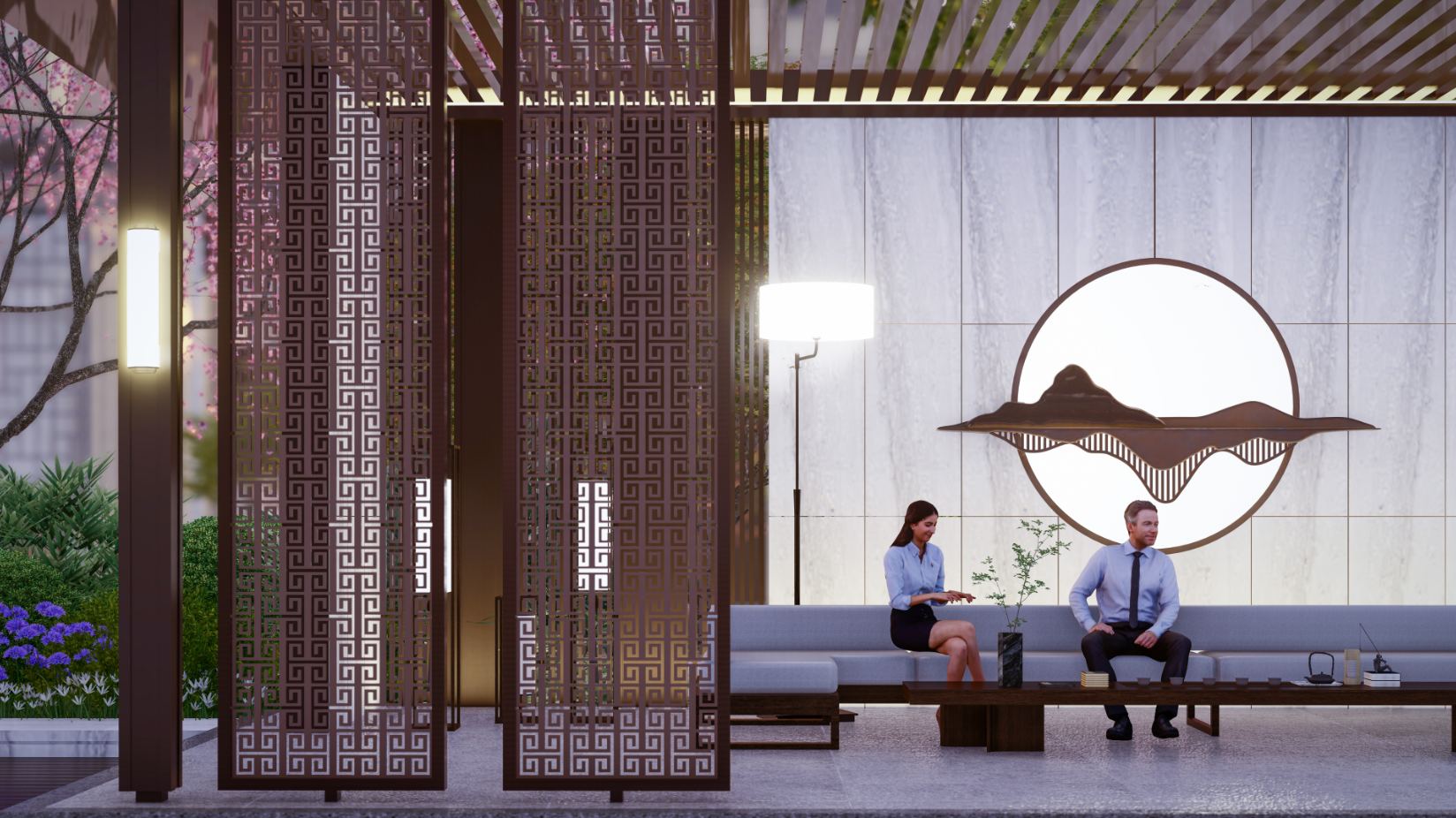 穿过营销中心到达【归璞之庭】开始步移景异的归家之旅。