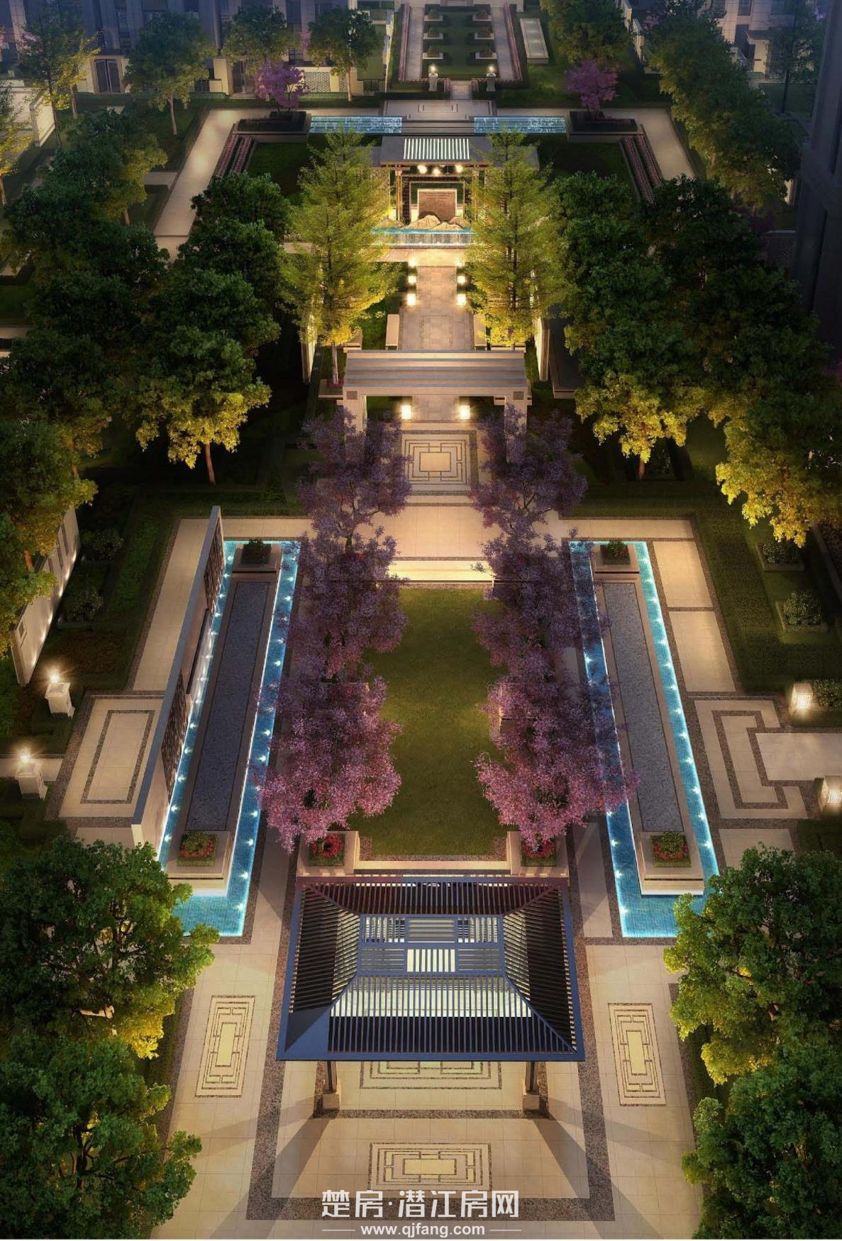 以“两轴一心多园多组团”为核心,再结合潜江市气候和地貌特点在项目中打造出风情林荫大道,夜光塑胶跑道,贯通项目的生活主轴,两大中心花园,四大主题花园,全龄健身中心。