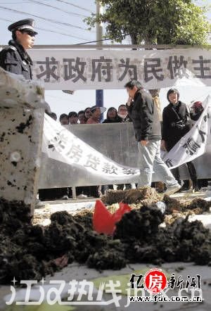 昆明上百业主围堵售楼部 现场洒鸡粪表不满