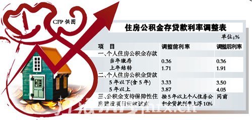 继央行前晚宣布上调金融机构存贷款基准利率后,住建部昨日又跟进宣布调整住房公积金存贷款利率,5年期以下(含5年)及5年期以上个人住房公积金贷款利率分别上调0.17和0.18个百分点。5年期以下(含5年)从3.33%调整为3.50%,5年期以上从3.87%调整为4.05%。