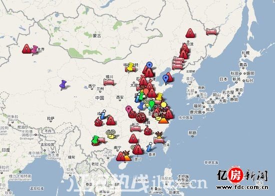 星岛环球网消息:一张网友绘制的“中国血房地图”10月8日出现在互联网上,地图通过标签的方式把媒体报道过的发生过暴力拆迁的地方在地图上标注出来。点击标签,会出现对该起暴力拆迁事件的描述,网友也可以自主在地图上添加新的标注。发起该项目的网友“血房地图”在地图说明上写道:“本地图由网友根据互联网上的公开信息标注中国各地发生暴力拆迁的地点,让消费者团结起来,拒买血房!”