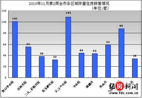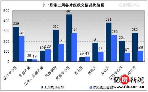 2010年11月2周武汉市二手住宅共成交了603套,与11月1周相比减少了18套,跌幅为2.9%,平均每天成交量为86套。从成交区域来看,汉口区、武昌区和汉阳区的二手住宅成交量有所下降,占整成交量的49.42%。