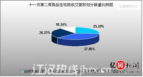 本周商品住宅成交的户型面积主要集中在90-120平方米户型,占到了整体成交量37.85%,较上周增加0.48%;90平方米以下户型占到25.49%,较上周减少4.28%;120-140平方米中大户型成交量占到总量的26.33%,较上周增加0.07%;140平方米以上的成交量占总量的10.34%,较上周增加3.73%。
