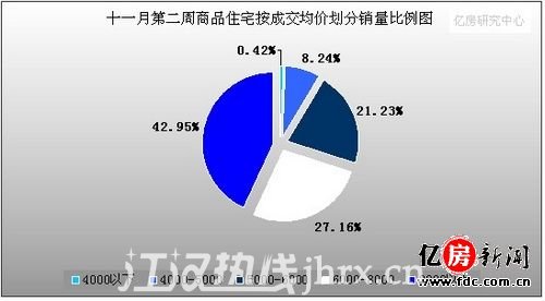 本周主城区楼盘成交均价主要集中在8000元/平方米以上,占到了整体成交量的42.95%,较上周减少2.14%;其次是6000-8000元/平方米,占总成交量的27.16%,较上周增加2.28%;5000-6000元/平方米,占总成交量的21.23%,较上周减少0.48%;4000-5000元/平方米,占总成交量的8.24%,较上周增加0.22%;4000元/平方米以下,占总成交量0.42%,较上周增加0.12%。