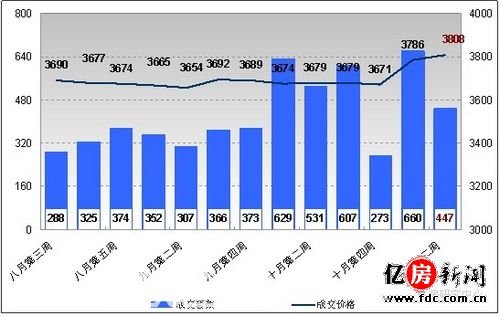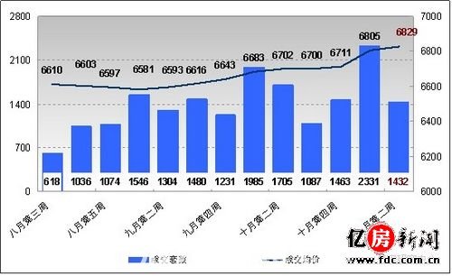 据亿房网研究 一周楼市走势相关数据是以亿房网市场研究调研和统计处理得出,由于周价格受该周成交的楼盘及楼盘成交的具体房屋影响较大,故一周走势能反映短期的变化状态,不能代表长期的走势,供市民参考。